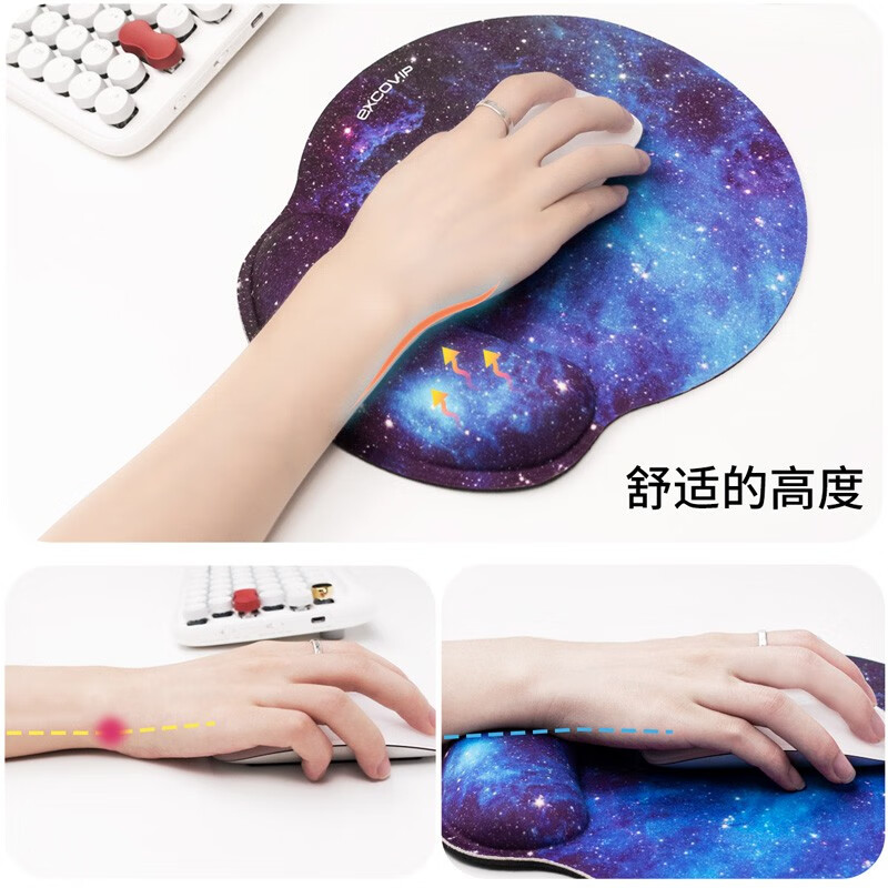 宜适酷(EXCO)星空舒适商务鼠标垫护腕硅胶鼠标手枕超大号加厚大尺寸电脑办公鼠标垫女生东营游戏腕垫托8885