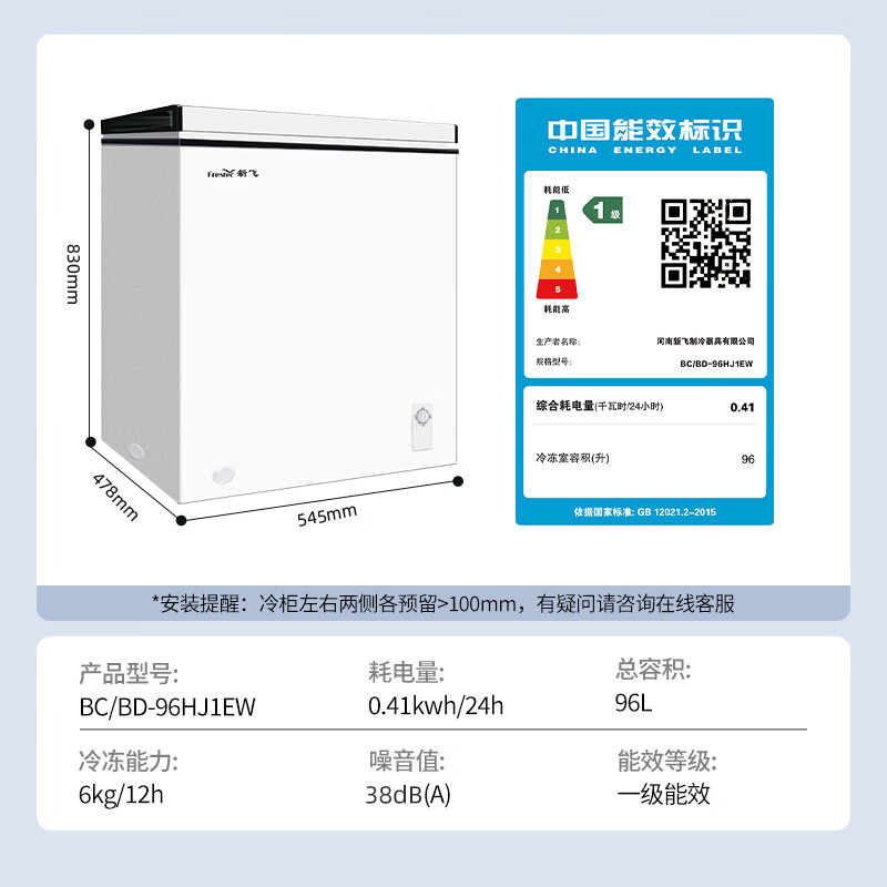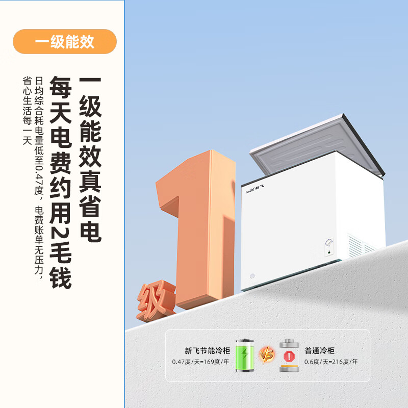 新飞(Frestec)96升冷藏冷冻转换迷你家用冰柜一级能效立式冷柜单温小冰箱BC/BD-96HJ1EW