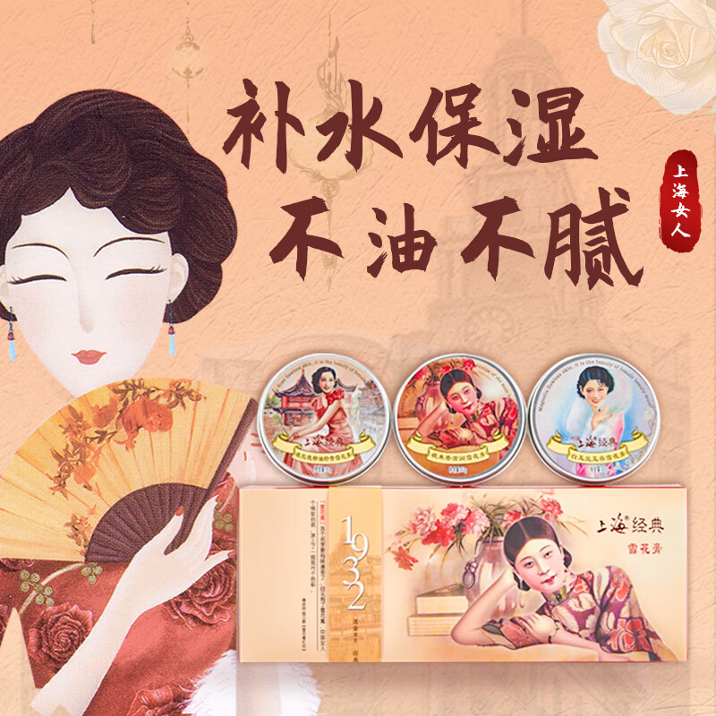 上海经典雪花膏三件套护肤礼盒护手霜面霜国货特产女生日伴手礼物