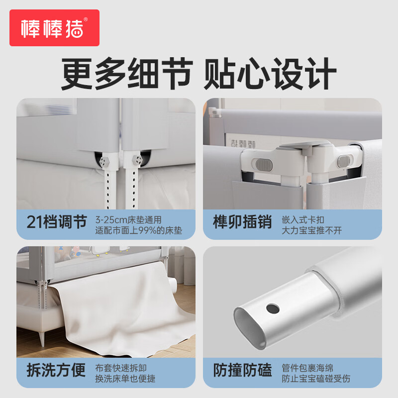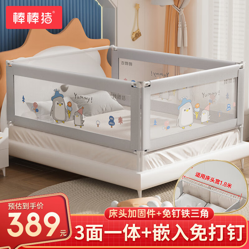 棒棒猪【三面装】床围栏宝宝防摔床边防掉嵌入床免打孔加固版1.8*2米