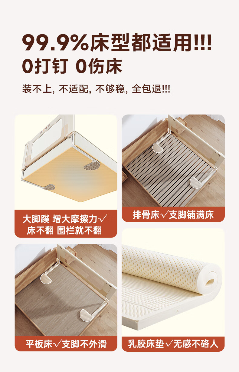 InnoTruth婴诺婴儿床围栏床上单面宝宝防摔围挡安全床边护栏一面挡板免打孔